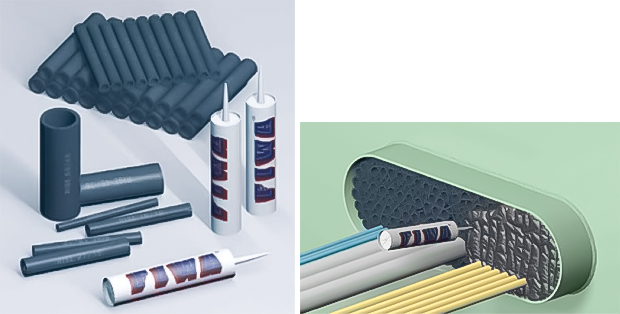 全てのケーブルに膨張材を巻きつけた後、空間にも膨張材(RISE/非背割れ)を埋めていく