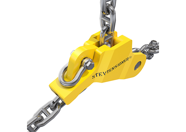 VRYHOF社のStevtensioner(テンショナー)を用いることを推奨いたします。テンショナーを使用することで、ウィンチやクレーンに求められる巻き取り力は要求把駐力に対して40-50%で済み、使用する船舶のコスト削減に繋がります。また、2個、3個のアンカーを同時に施工することもできますので、やはりコスト削減に繋がります。